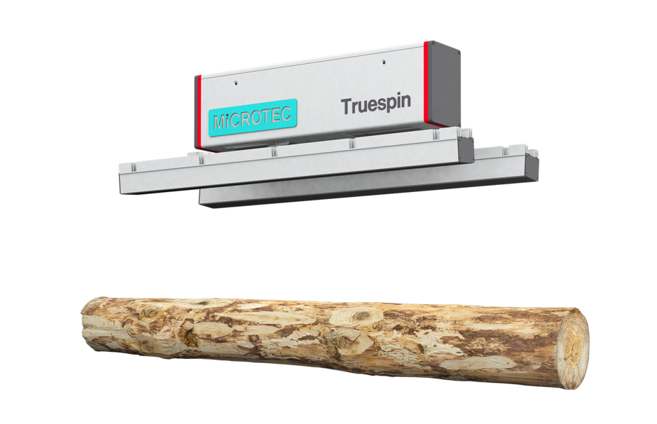 Truespin is a real-time monitoring system for measuring the rotation and uncontrolled movements of logs. It detects and tracks the external texture of the log acquired with digital cameras without the aid of additional marks.