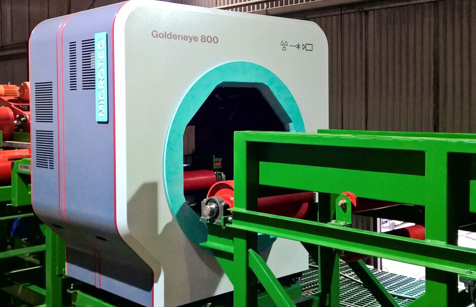 A brand new Goldeneye 800 scanner has been installed at AKD Softwoods in Colac, Victoria. With a special heavy-duty design for high speed scanning, the scanner works in full production at a feeding speed of 1.200 meters per minute. Featuring the most advanced in house developed technology such as innovative low power generation X-ray, the scanner identifies all external and internal wood defects. Next generation cameras and sensors developed in-house at Microtec assure highest performance and recovery in touchless grading. The structural framing is produced according to the AS/NZS1748 Standards out of Radiata Pine grown in sustainable plantations. Goldeneye complies with those Standards and makes machine grading profitable, providing added value to the wide range of products.