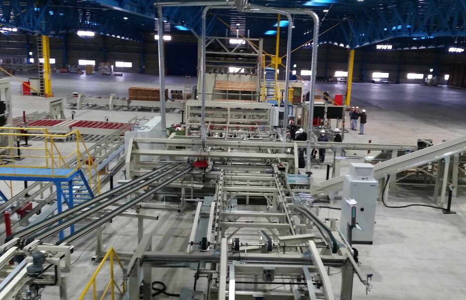 Microtec and System TM completed the project successfully for the customer Chugoku Lumber in Hyuga, Miyazaki Prefecture, Japan. System TM delivered a high-speed moulder line for finger joint and glued laminated boards. The workpieces are high-speed single-piece fed to a stud carrier that consists of a moisture meter, a Warpscan from Microtec, an automatic out sorting of workpieces for finger joint, a high-speed board turner and a multi-head cross cut saw, that cuts the workpieces in very exact lengths.