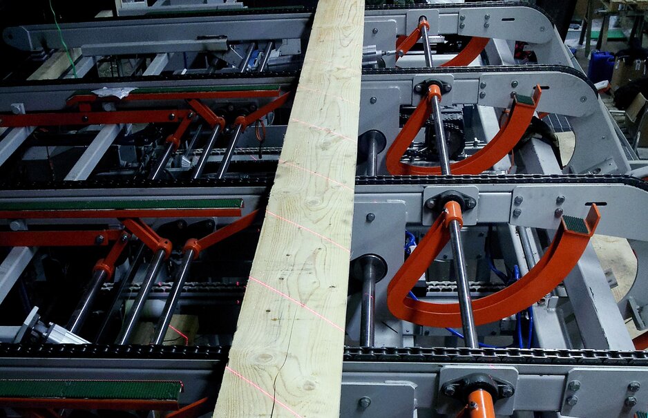 At the beginning of 2015 a new Multi-Sensor Quality Scanner Goldeneye 700 with X-ray was integrated in the Dimter chopping line at Derome Timber, Vedigge, Sveden. This scanner performs strength grading according to official standards at highest feeding speed rates. The X-ray based scanner recognizes the position of defects and transfers all the data to the subsequent evaluation units. The use of X-ray technology provides always correct grading results and a constant quality, leading to an up valuation of lumber.
