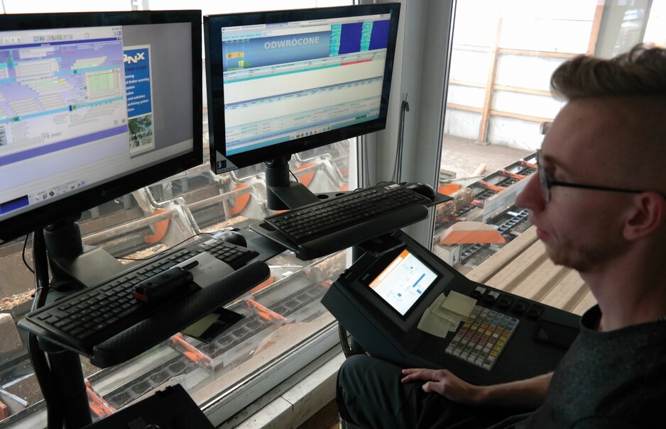 Therefore, at the end of 2019, the company installed a MiCROTEC Logeye 300 prototype scanner, which can determine the geometric, optical, and structural features of wood and recognizes internal defects in raw materials. The result are color photos of the cross-sections of each log, viewed on monitors by the line operator who is a qualified sorter. Within seconds, he makes the decision to classify a log into a specific wood class.