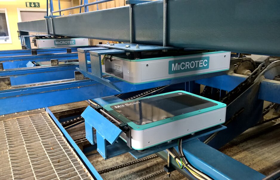 One of the latest installations of M3 Scan with EU certification EN 15497:2014 stands in Norra Timber in the Sävar sawmill (Sweden). The lamella there exit the new kilns, their moisture content is tested by M3 Scan in transverse transport and they get sorted by Viscan into C24 to C30 stress grades. Afterwards they are finger-jointed up to a length of 12m.