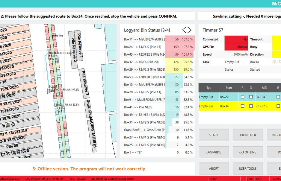 "Our sawmill runs non-stop, 24 hours a day. Especially at night or in adverse weather conditions, the wheel loader drivers were more prone to mistakes. Mistakes occurred at the sorting boxes or the wrong log piles were approached for intermediate storage of the logs. MiCROTEC's Winlog GPS system can locate our six handling machines with an accuracy of up to 20cmIncorrect movements are almost completely eliminated," says Zimnickas, describing the advantages of the system. In addition to the aspect of precise positioning, the software tool also allows all relevant data to be stored for each log. Geometry, wood type or quality can be stored together with information on the date of receipt or supplier in a special sorting sequence that is individual for each log. With the help of all relevant data, the sorting process at the logyard can be optimally controlled and the individual sorting boxes can be filled according to customer-specific selection criteria. In addition, the routes of the wheel loaders can be analyzed and optimized in real time. In addition to saving time, this also saves valuable fuel costs.