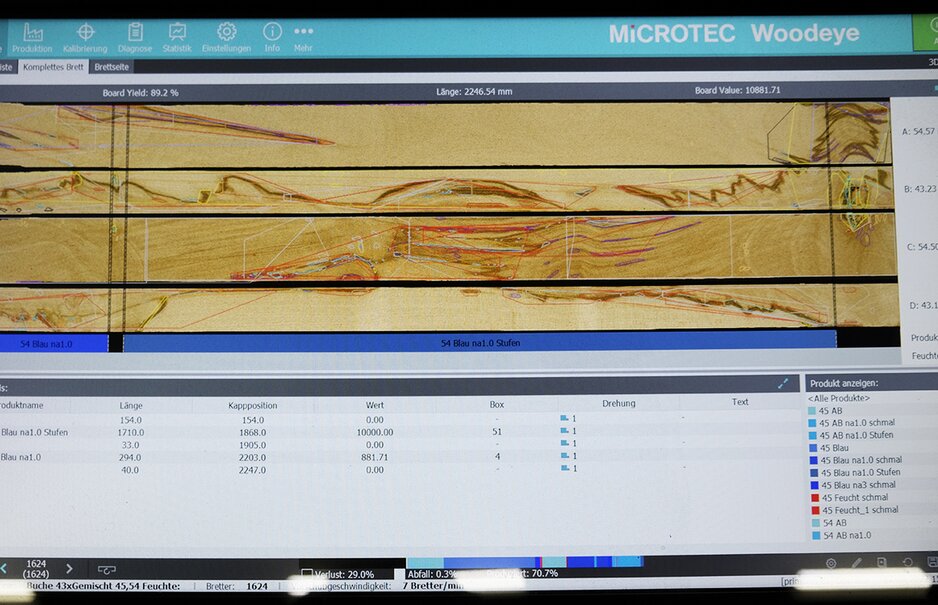 In addition to appearance, a lot has happened under the “hood” of the latest scanner generation: “The new model is even better at detecting knots and cracks,” Hohmann says, who is satisfied with the performance. According to Hagnberger, this improvement is mainly the result of the constant effort to further develop the software: “The intelligent programs, which are running in the background, are key factors in the reliable detection of defects in the wood. Together with state-of-the-art hardware elements, our scanners deliver perfect scanning and optimization results.”
